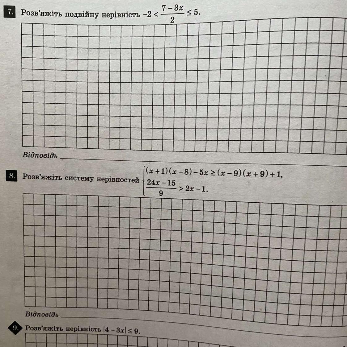 -2 × 2 < (7-3x)/2 × 2 ≤ 5 × 2 -- множимо кожну частину нерівності на 2, щоб позбутися знаменника
