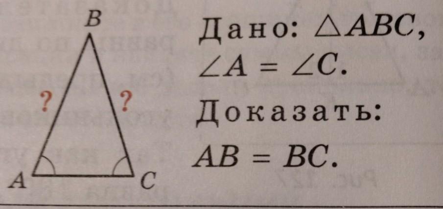 2. Согласно определению равнобедренного треугольника, две равные стороны (AB и AC) против равных углов (<A и <C).