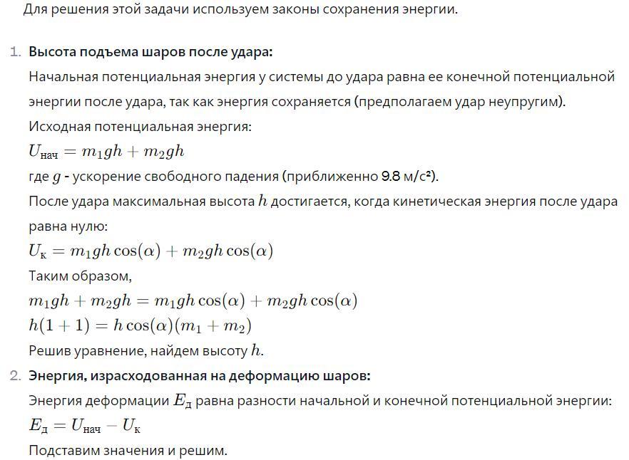 Обратите внимание, что в данной задаче предполагается, что удар является неупругим, и часть энергии преобразуется в деформацию шаров.