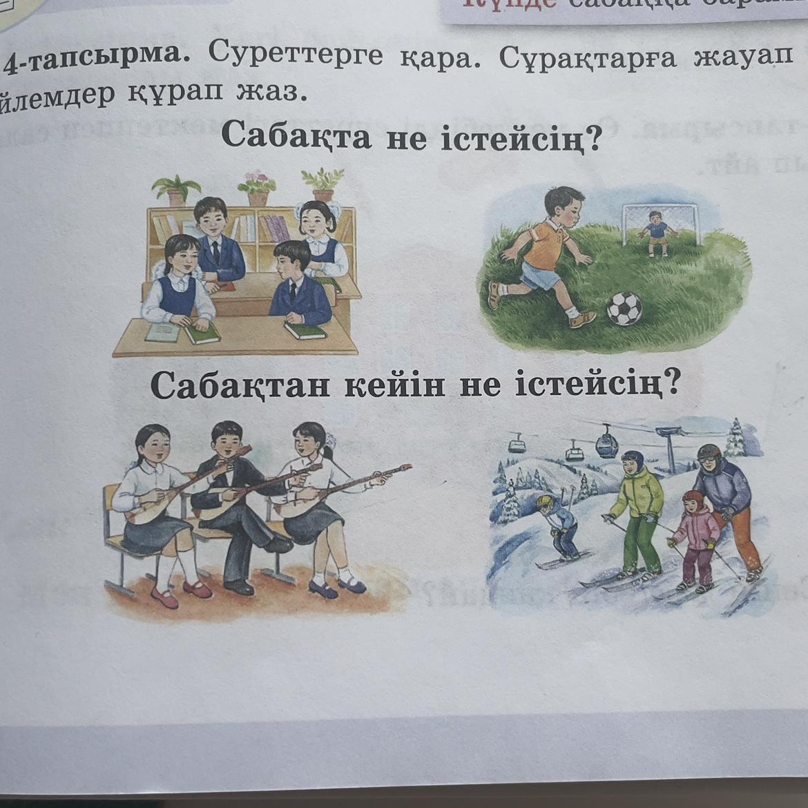 мен сабақта сабақты оқимын. сабақтан кейін отбасымен қыдыруға шығамын.