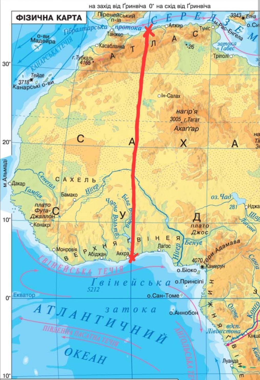 1) на меридіані 0° д. крайні точки материка лежать на таких широтах: