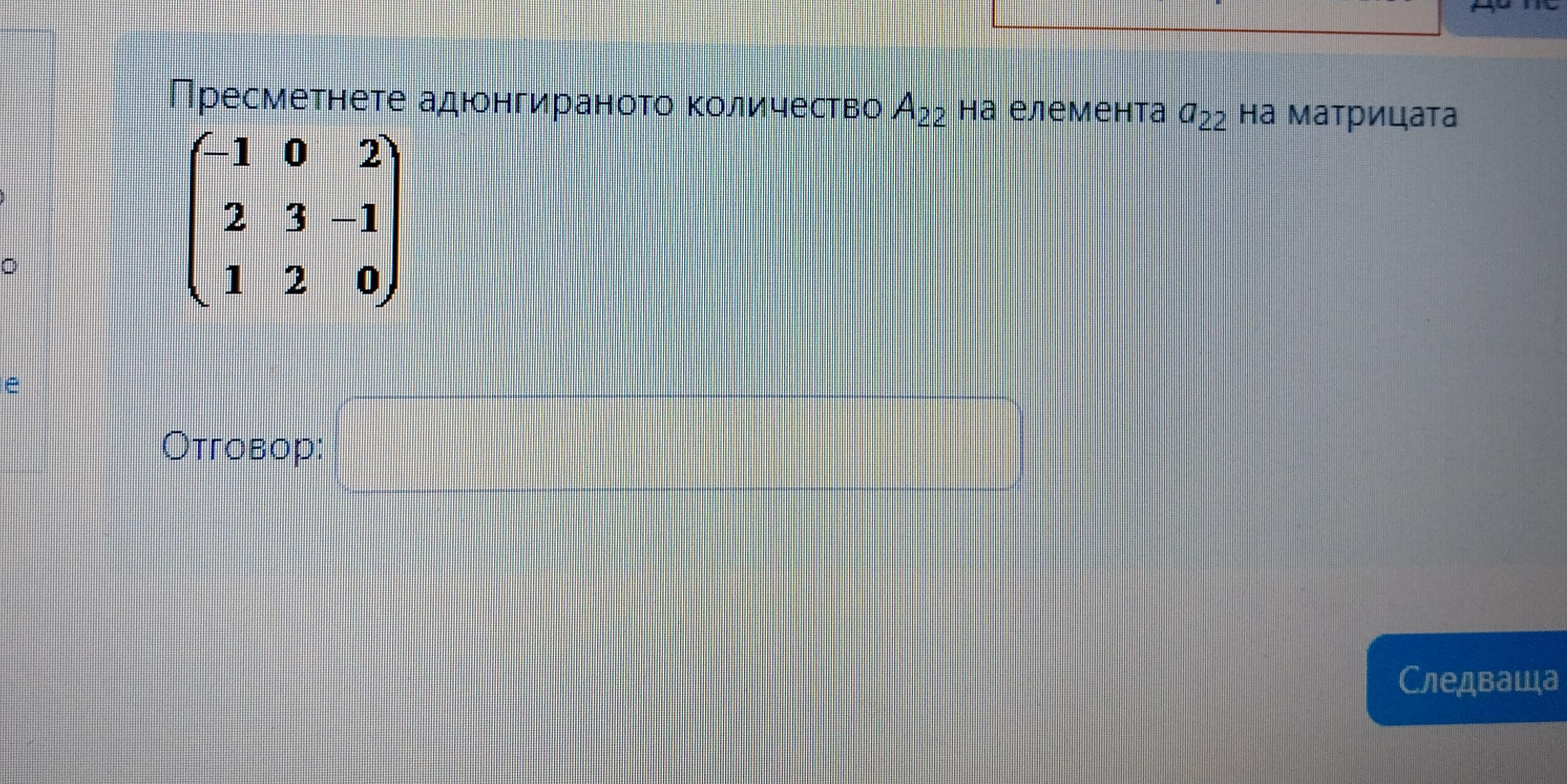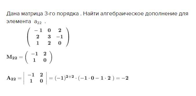 Дана матрица 3-го порядка . Найти алгебраическое дополнение для элемента а₂₂ .