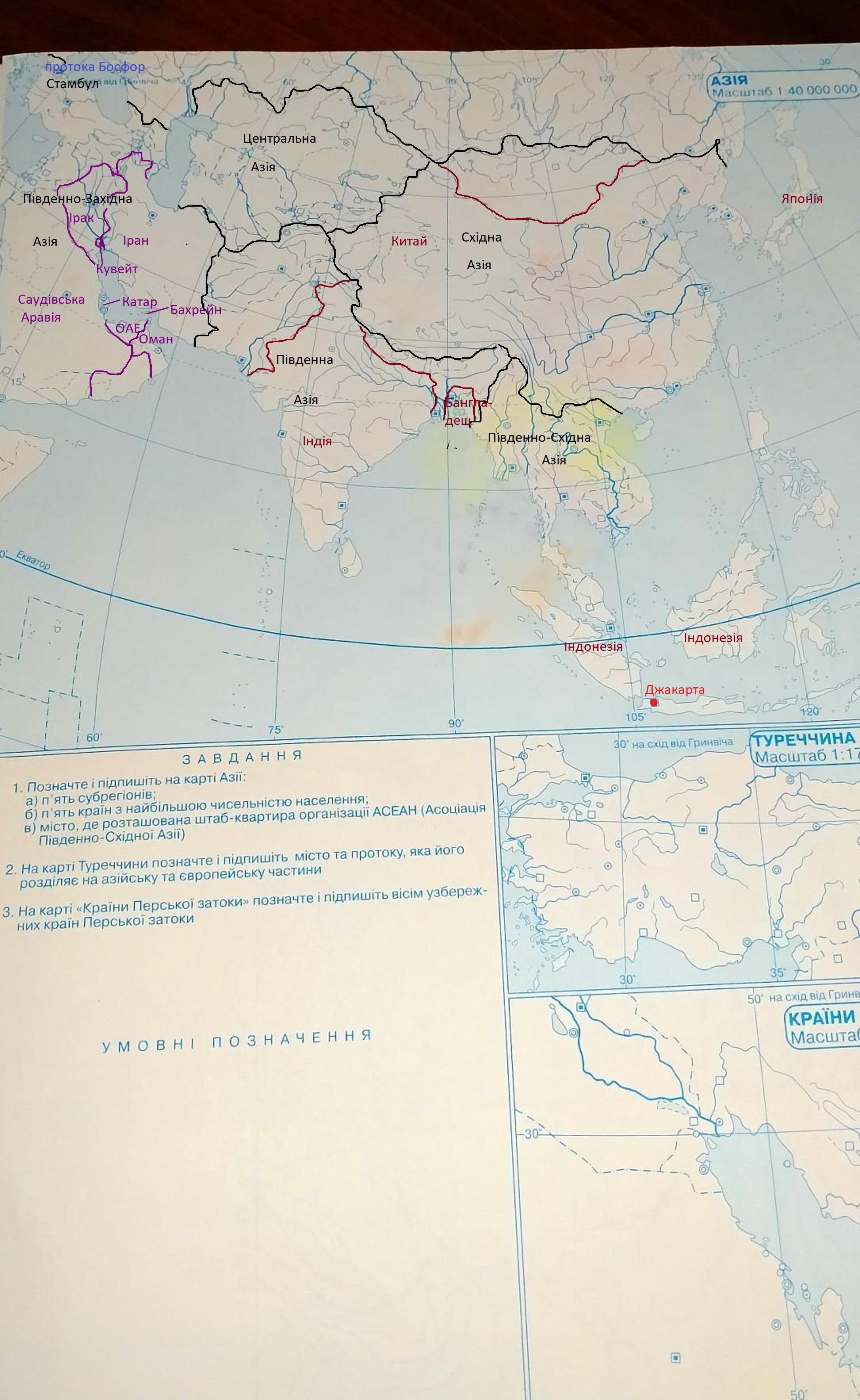 - 1. Позначте і підпишіть на карті Азії: