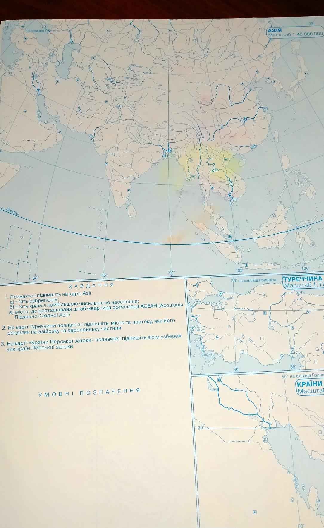 1. Позначте і підпишіть на карті Азії: