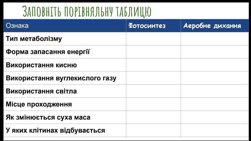 ЗАПОВНІТЬ ПОРІВНЯЛЬНУ ТАБЛИЦЮ Ознака
