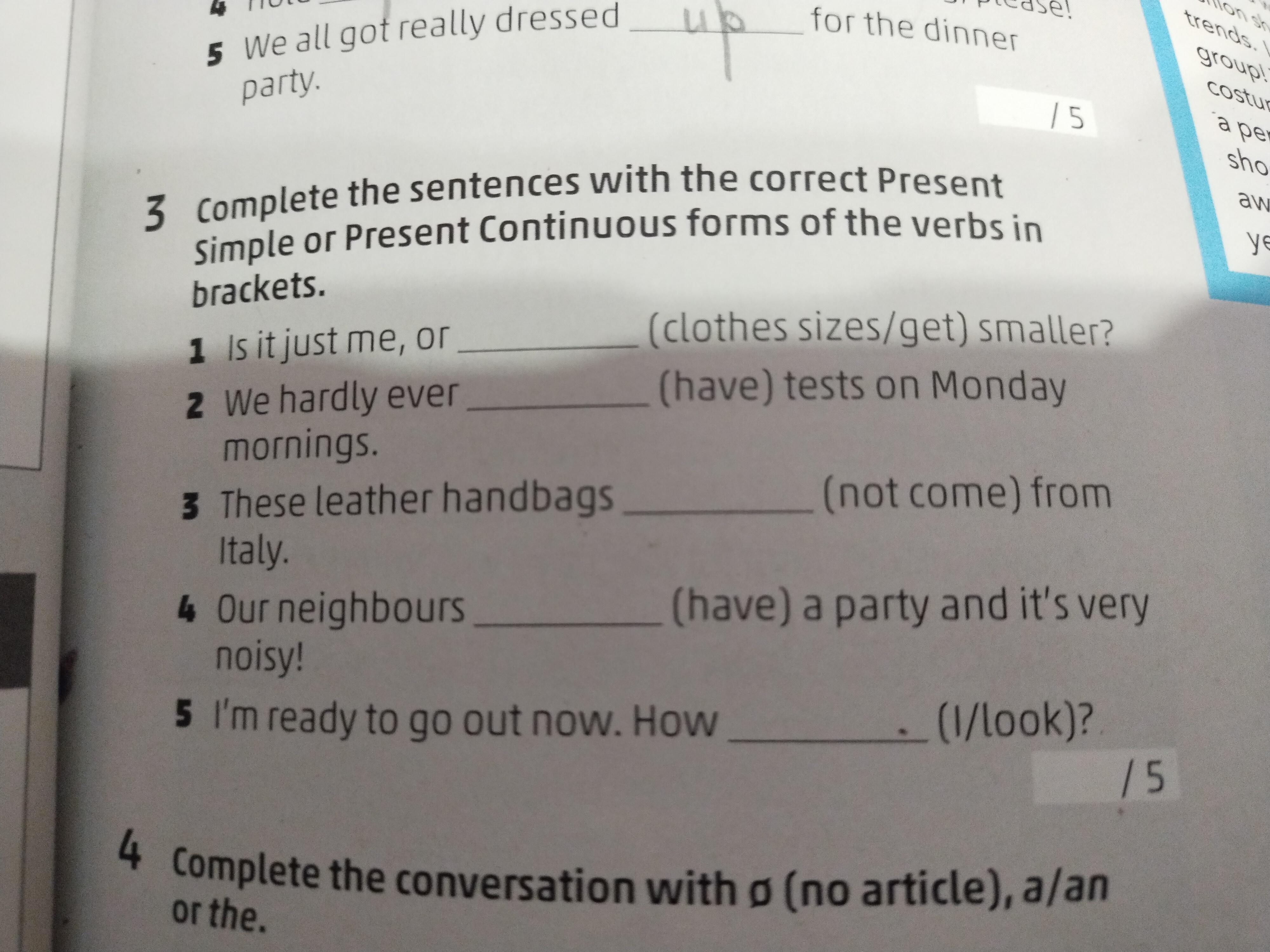 Complete the sentences with the correct Present Simple or Present Continues forms of the verbs in brackets