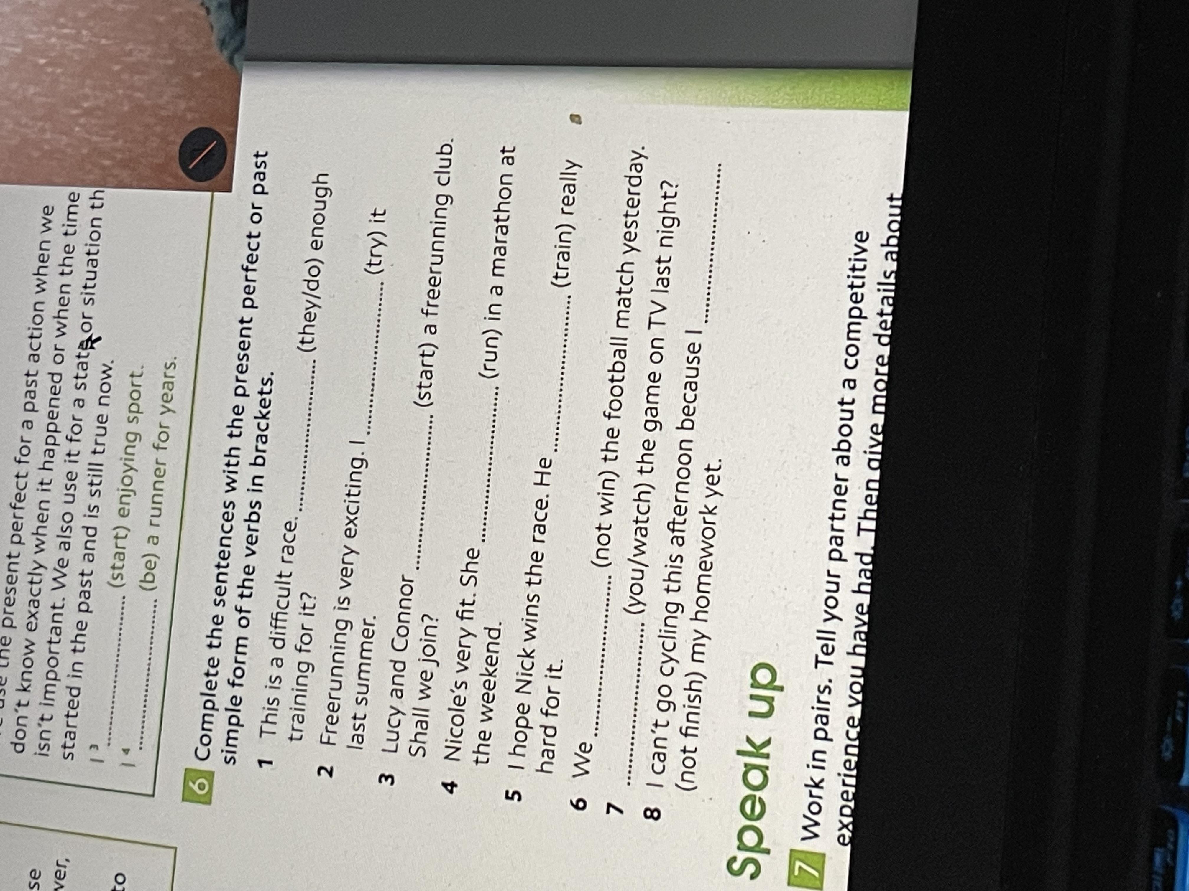 4. Nicole's very fit. She ran in a marathon at the weekend.