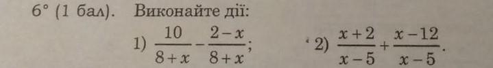 10/(8 + х) - (2 - х)/(8 + х) = (10 - (2 - х))/(8 + х) =