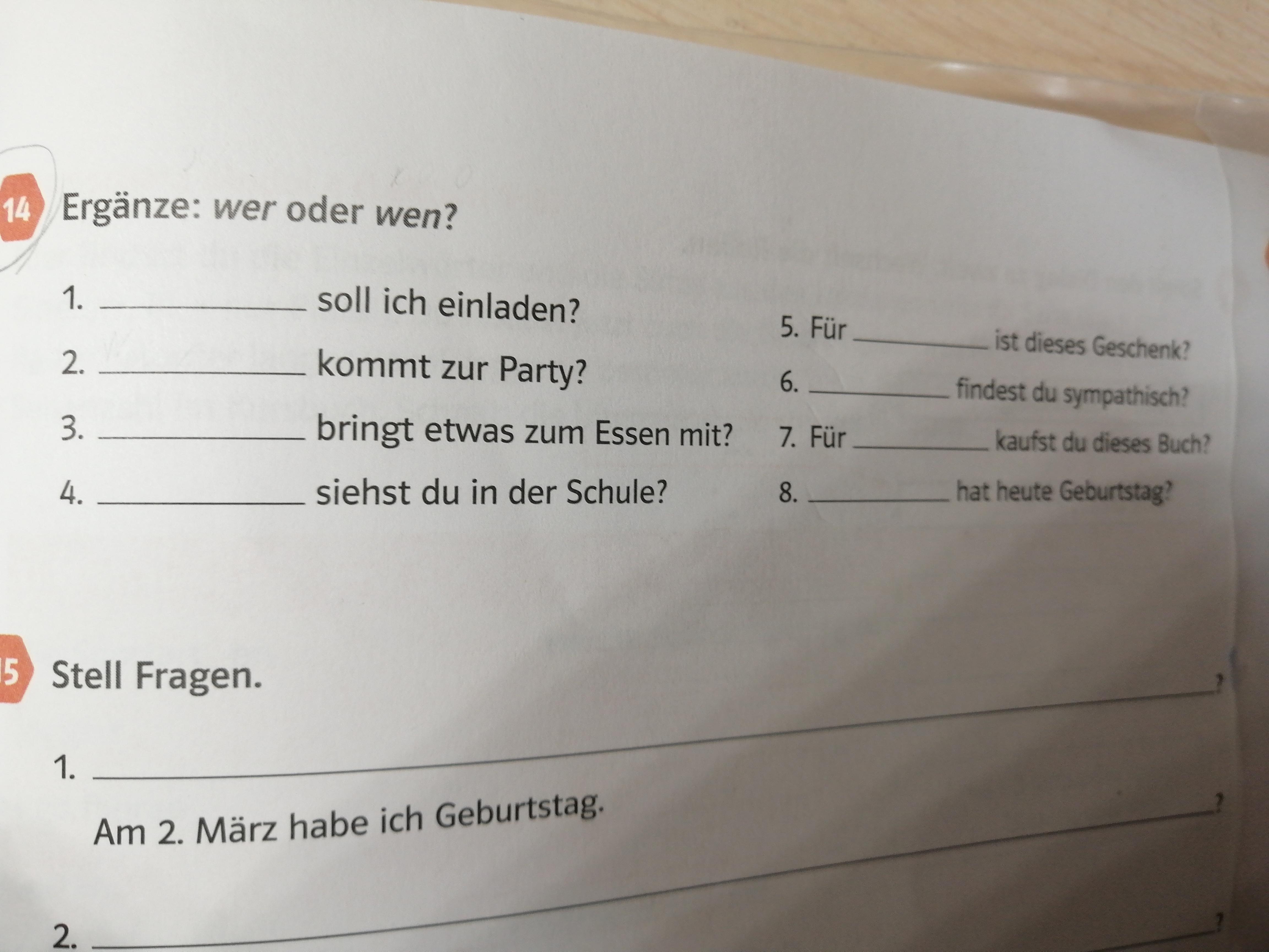 1.Wen,2. Wer, 3.wer, 4.wen,5.wen 6.wen,7. Wen. 8 wer