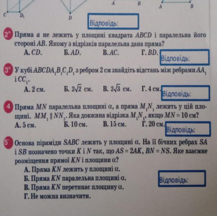 2) Дана пряма паралельна стороні AB квадрата ABCD. Таким чином, вона паралельна відрізку BD. Отже, відповідь - Г.BD.