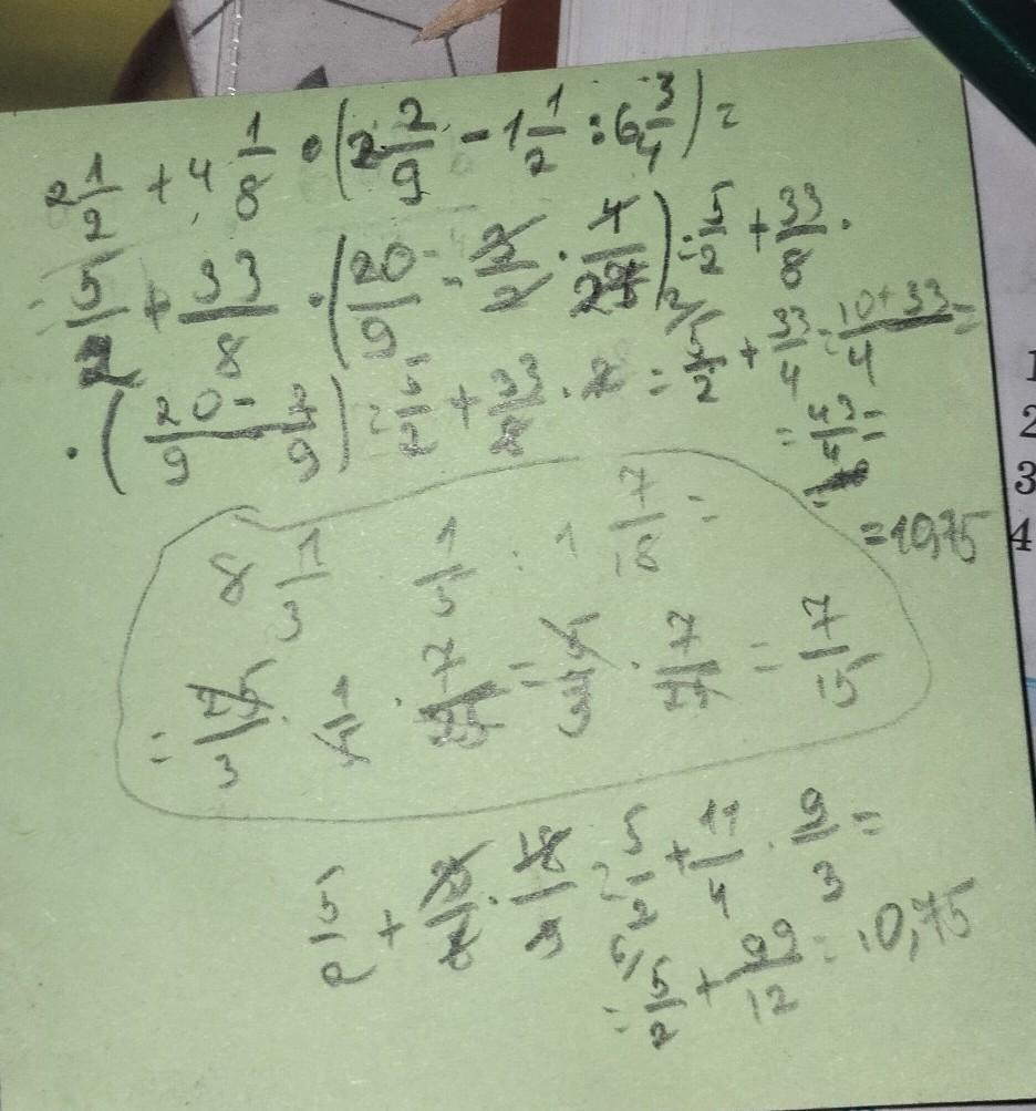 после 5/2+33/8×(20-2/9) есть два разных варианта решении 1 вариант сверху уу а 2 снизу в середине 4 задание .5 я не знаю надеюсь правильно