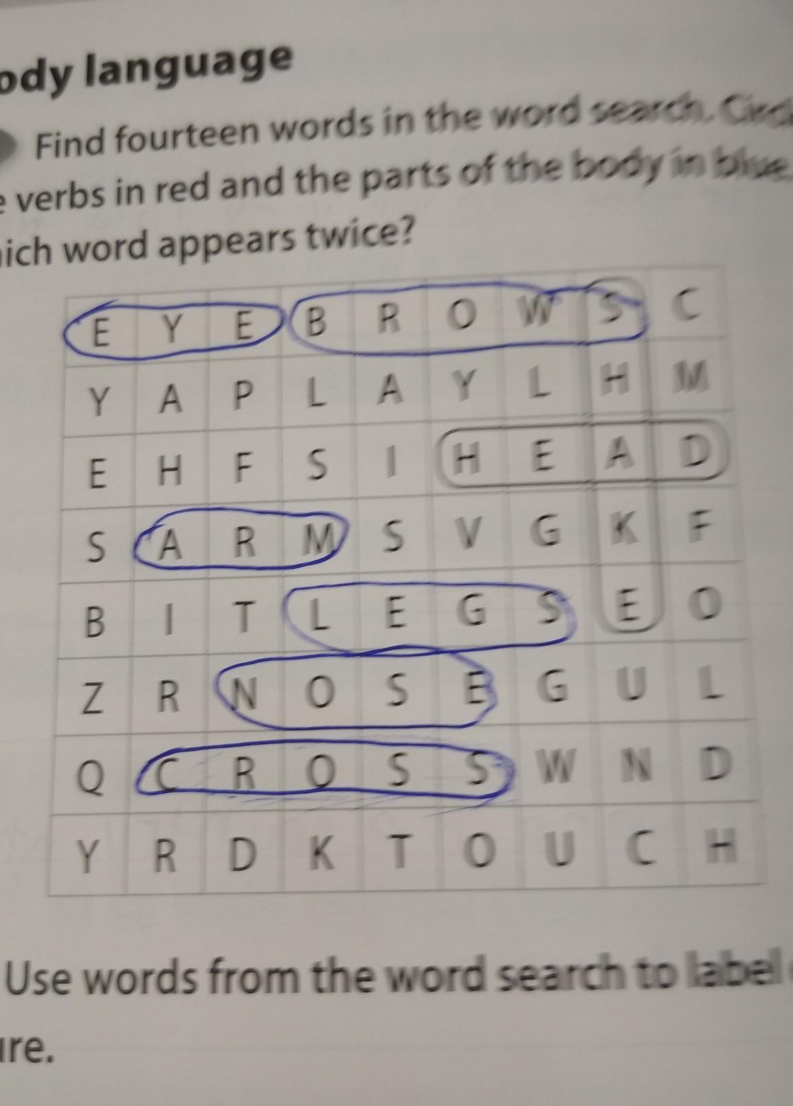 Eye, brows ,play,head,arm,legs,nose ,cross,touch