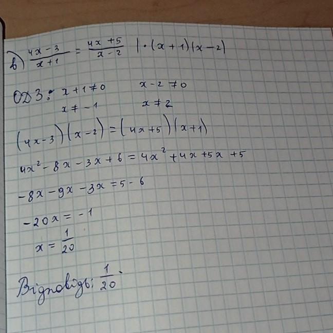 в) (4x-3) / (x+1) = (4x+5) / (x-2)