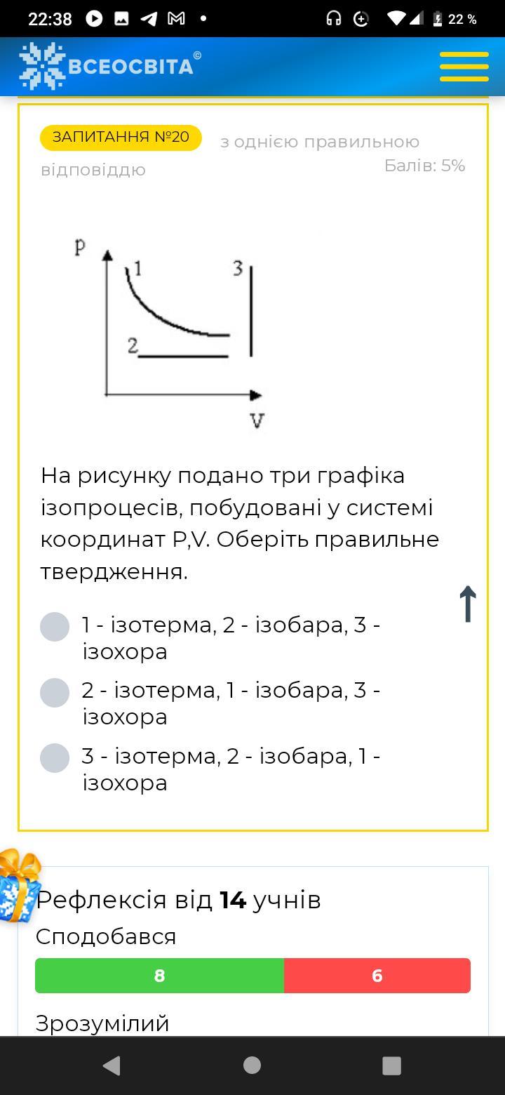 1 - ізотерма 2 - ізобара 3 - ізохора