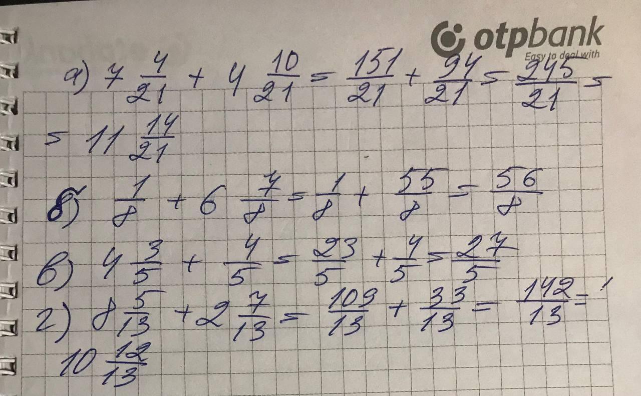590. a) 7 ⁴/21 + 4 ¹⁰/21