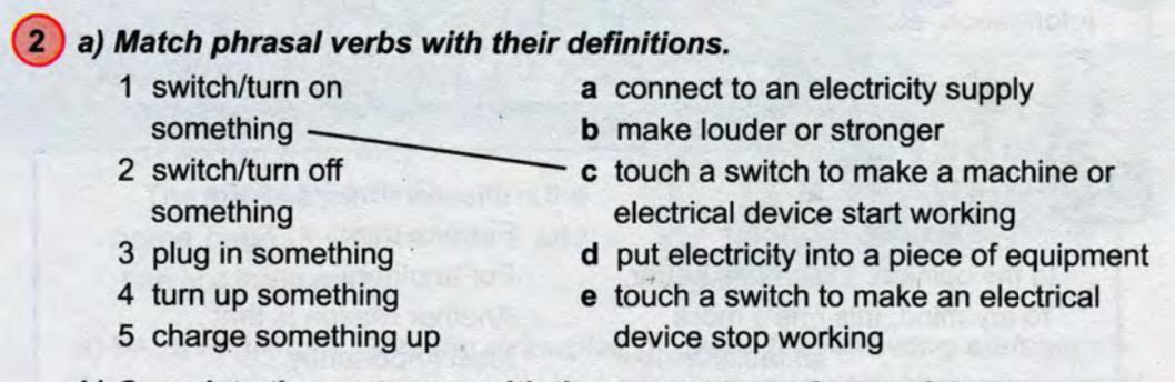 1. Switch/turn on something - c) touch a switch to make a machine or electrical device start working