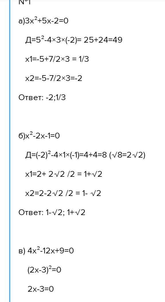 1) 3x²+5x-2<0