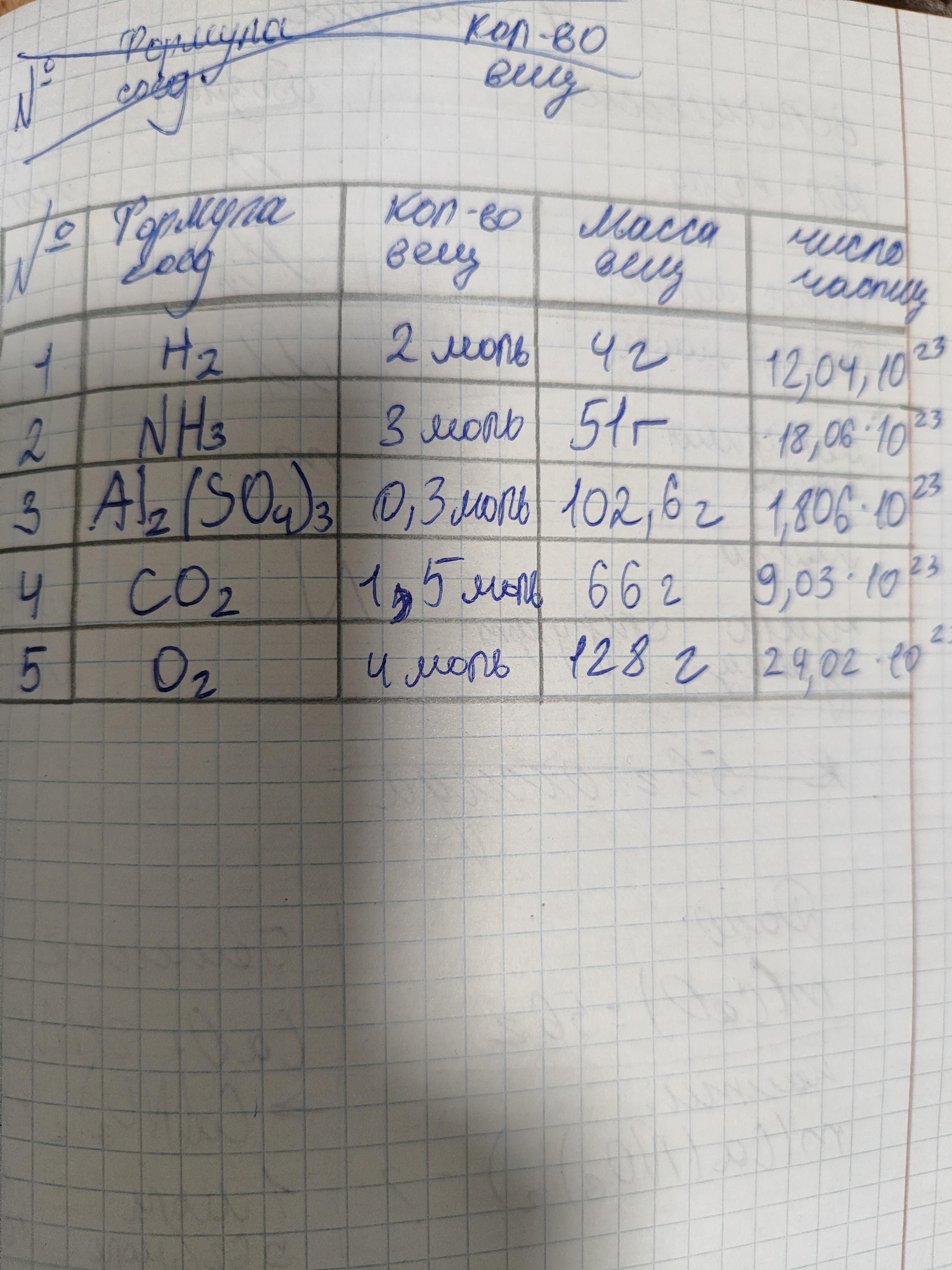 H2SO4 0,5 моль 49г 3.01×1023 моль