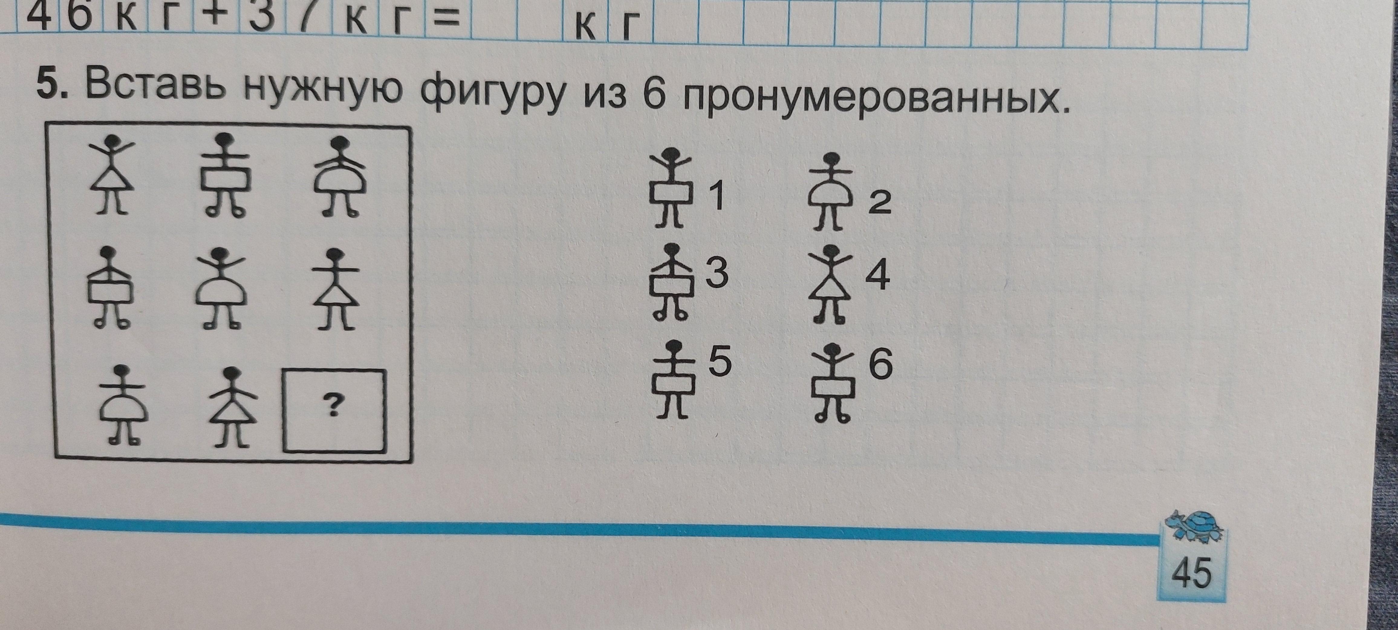 мы можем заметить что в каждой строчке низ и руки в разных фигурах и положениях дальше смотрим и способ вычитания подбираем руки и низ