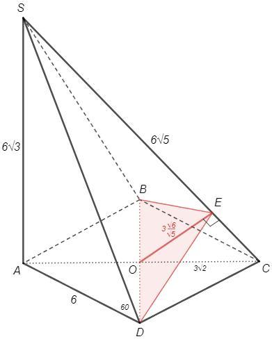△OEC~△SAC => OE/SA=OC/SC => OE=3√2 *6√3 /6√5 =3√6/√5