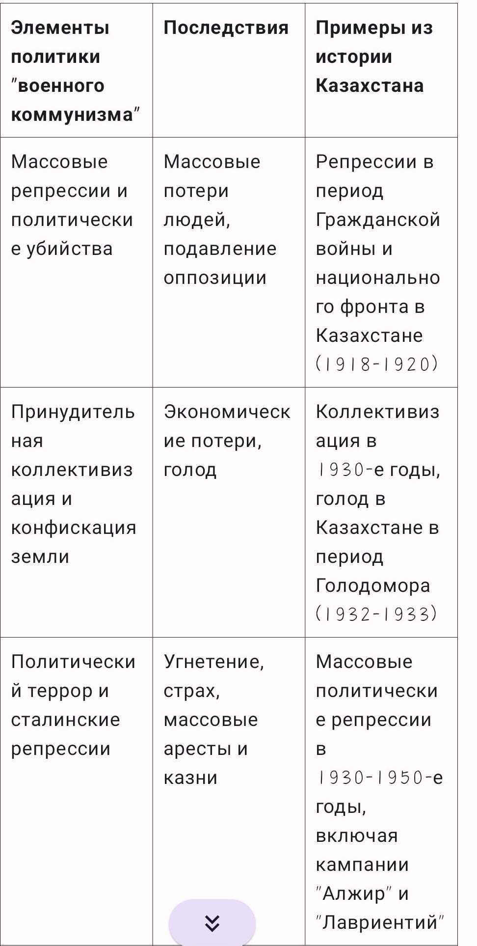 заполните таблицу "Политика "военного коммунизма" в Казахстане".