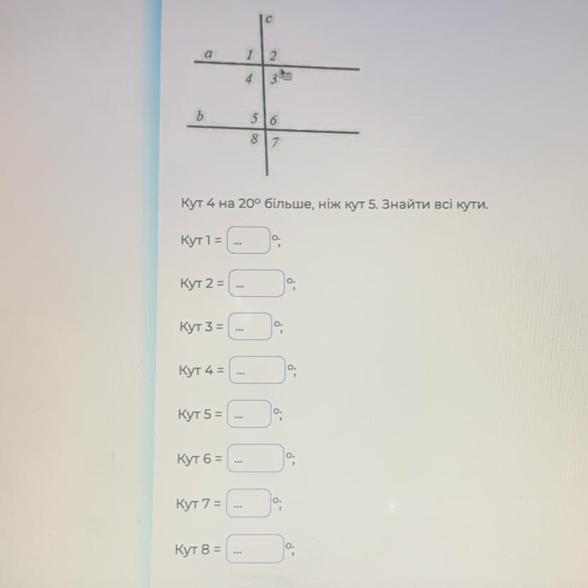 Тому, нехай кут5 = х, тоді кут6=х+20