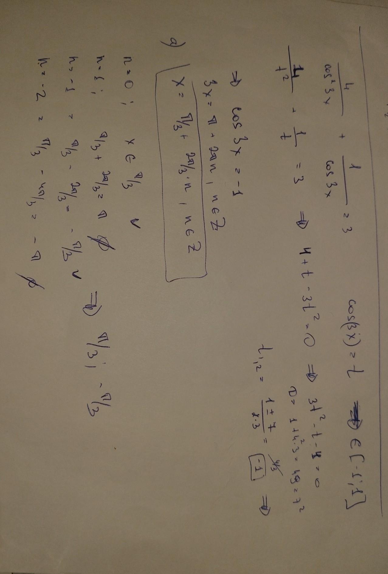 а) Решите уравнение 4/cos²3x +1/cos3x = 3