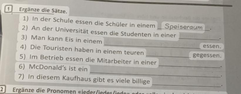 2. An der Universität essen die Studienten in einer Cafeteria.