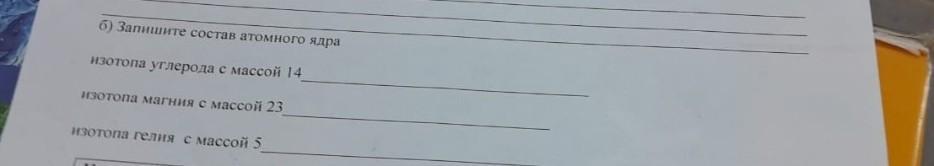 б) Запишите состав атомного ядра изотопа углерода с массой 14 изотопа магния с массой 23 изотопа гелия с массой 5 пжж даю 30 баллов
