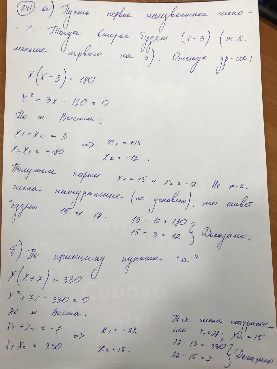 б) Найдите два числа, если одно меньше другого на 7, а их произ- ведение равно 330.