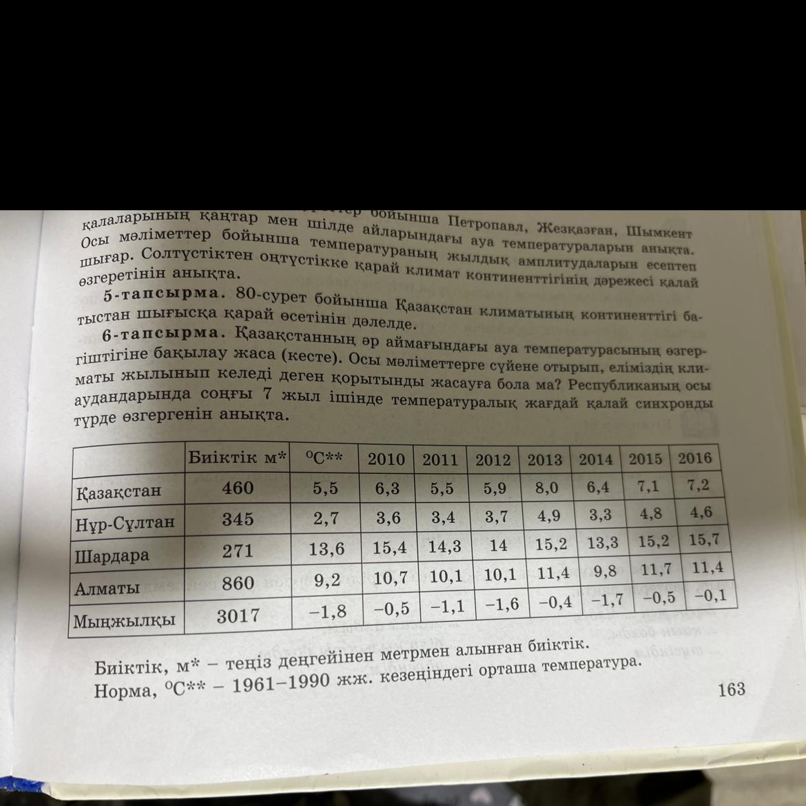 6-тапсырма. Қазақстанның әр аймағындағы ауа температурасының өзгер-