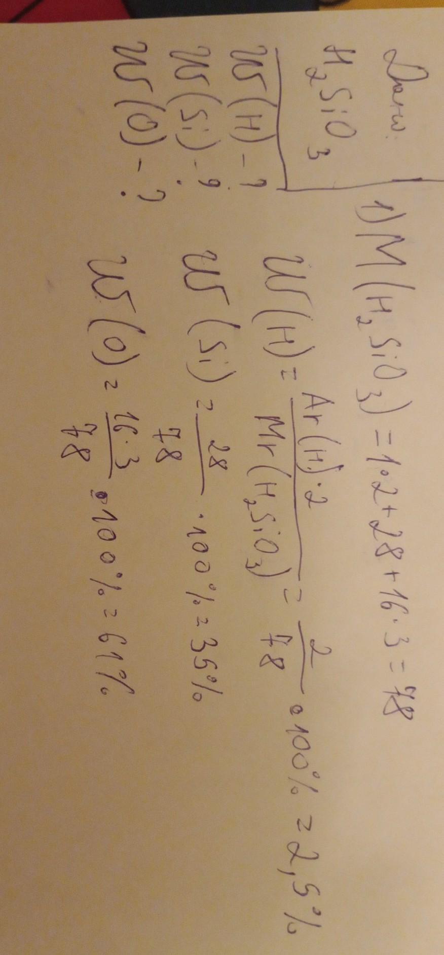 Певна кількість силікатної кислоти Н2SiОз складається з 1 г Гідроґену, 14 г Силіцію і 24 г Оксиґену. Обчисліть масові частки хімічних елементів у силікатній кислоті