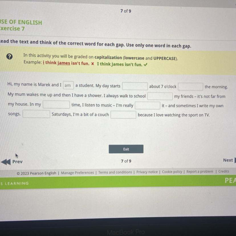 My day starts at about 7 o’clock in the morning.I always walk to school and my friends-it’s not far from my house. In my free time, I listen to music - I’m really тут не знаю.At Saturday’s .I’m a bit of a Couch and because I love watching the sport on TV . Была рада помочь тебе ✨