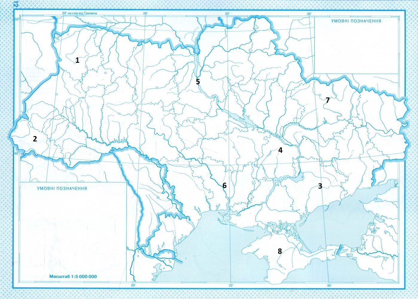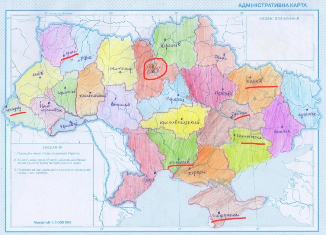 Підпишіть адміністративно-територіальні одиниці позначені на карті цифрами, підпишіть їх адміністративні центри