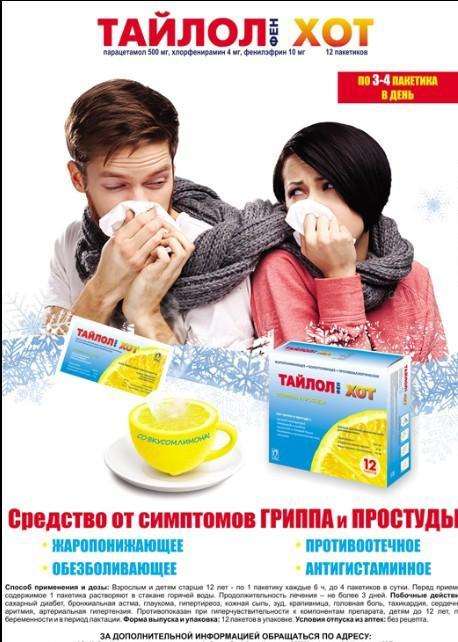 Добрый день! Сейчас я расскажу кое что, о нашем новом препорате от гриппа и простуды. Тайлол фен Хот:
