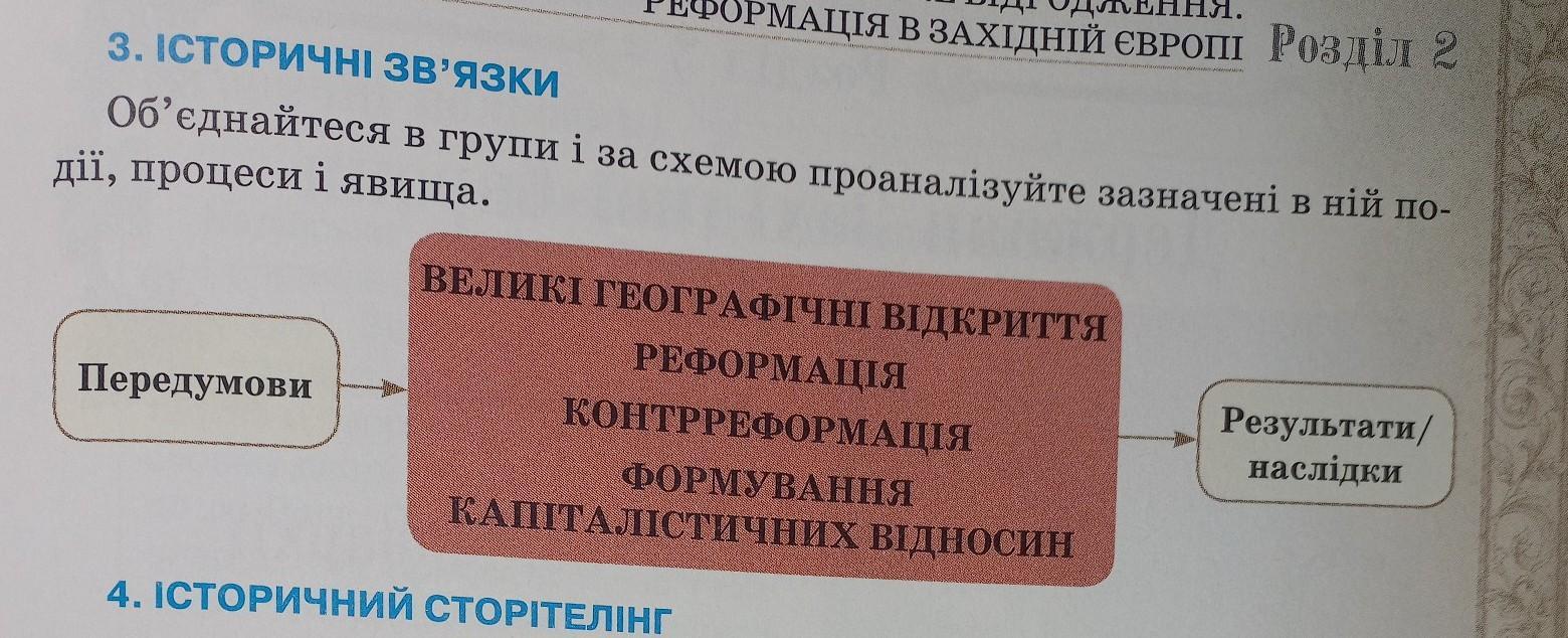Об'єднайтеся в групи і за схемою проаналізуйте зазначені в ній по- дії, процеси і явища