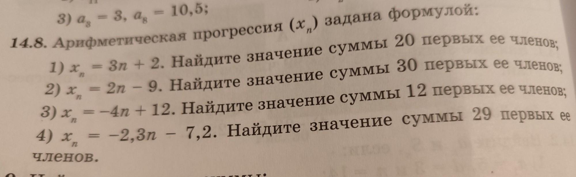 14.8 Арефметическая прогрессия (Xn) задана формулой: 2) Хn = 2n - 9. Найдите значение суммы 30 первых ее членов