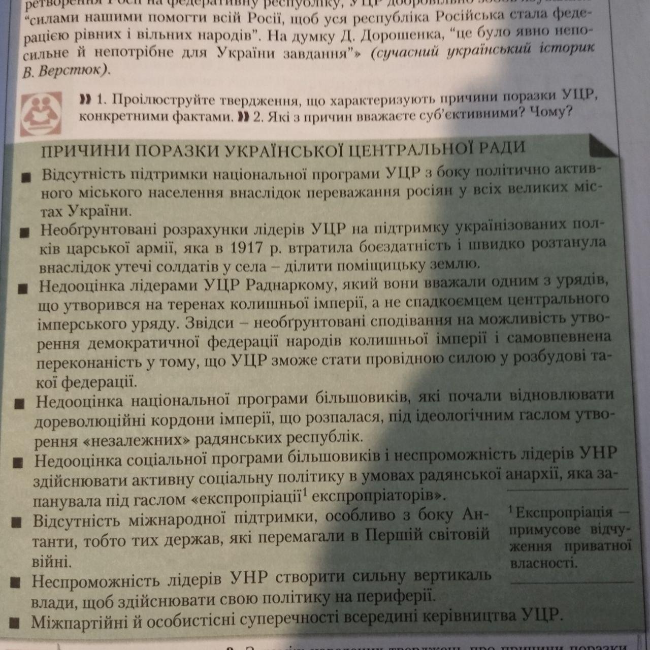 1. Проілюструйте твердження, що характеризують причини поразки УЦР, конкретними фактами. 2. Які з причин ви вважаєте суб'єктивними? Чому?