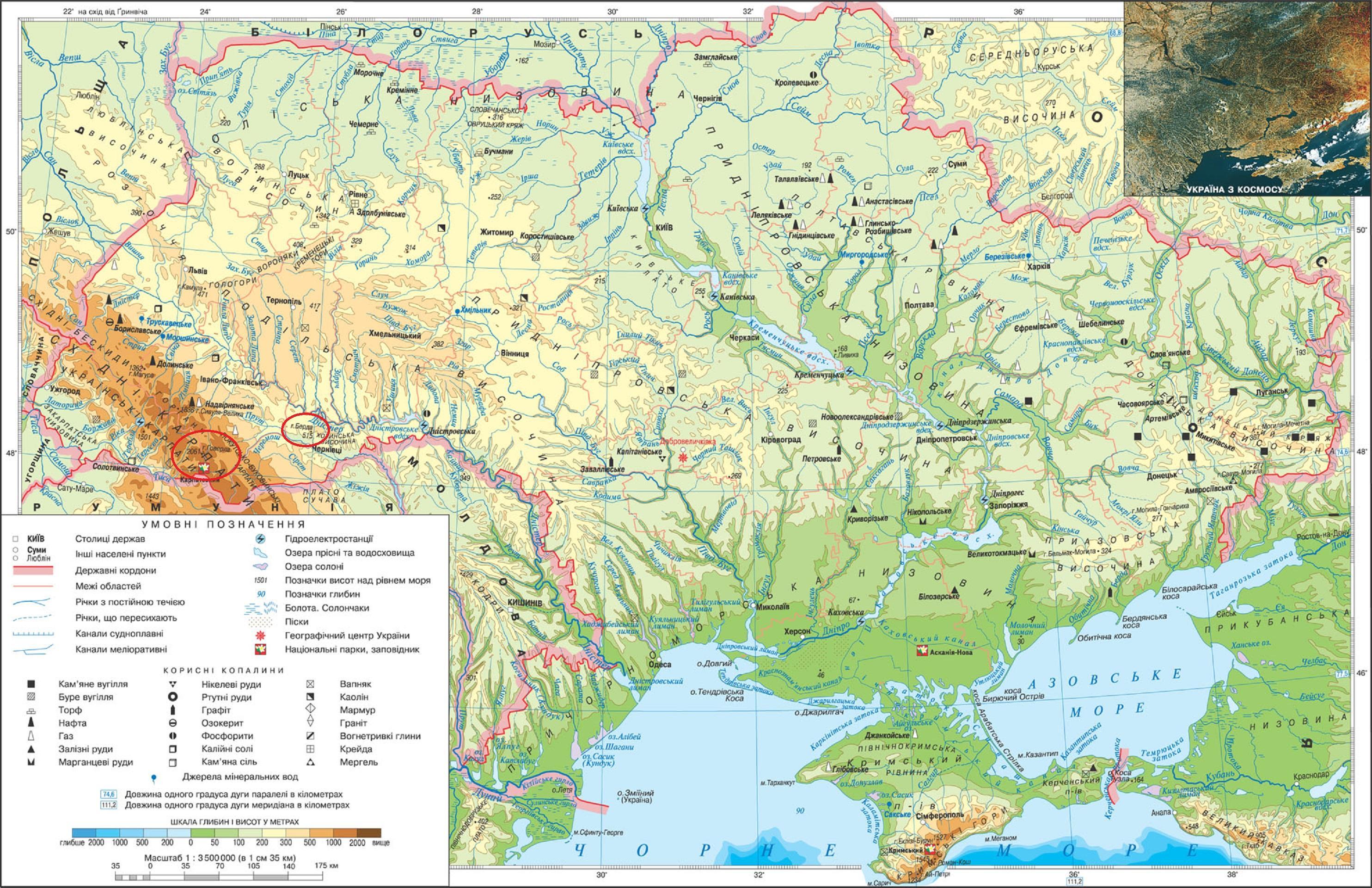 - За фізичною картою України знайдіть найвищу точку з вiдміткою 2061 м - це гора Говерла.
