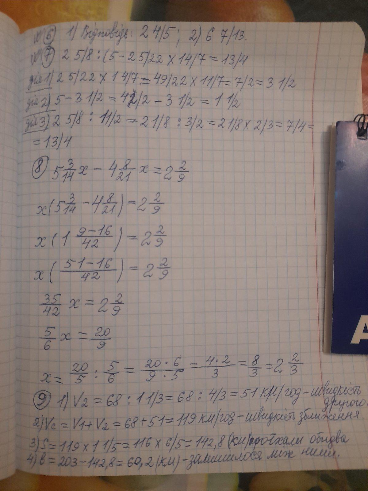 9. v1 = 68; v2 = v1 : 1 1/3; S = 203 км; t = 1 1/5