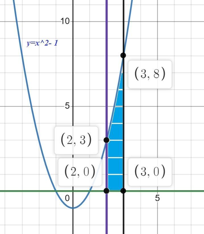 y=x^2- 1; y = 0; x = 2; x = 3. (См. скриншот)