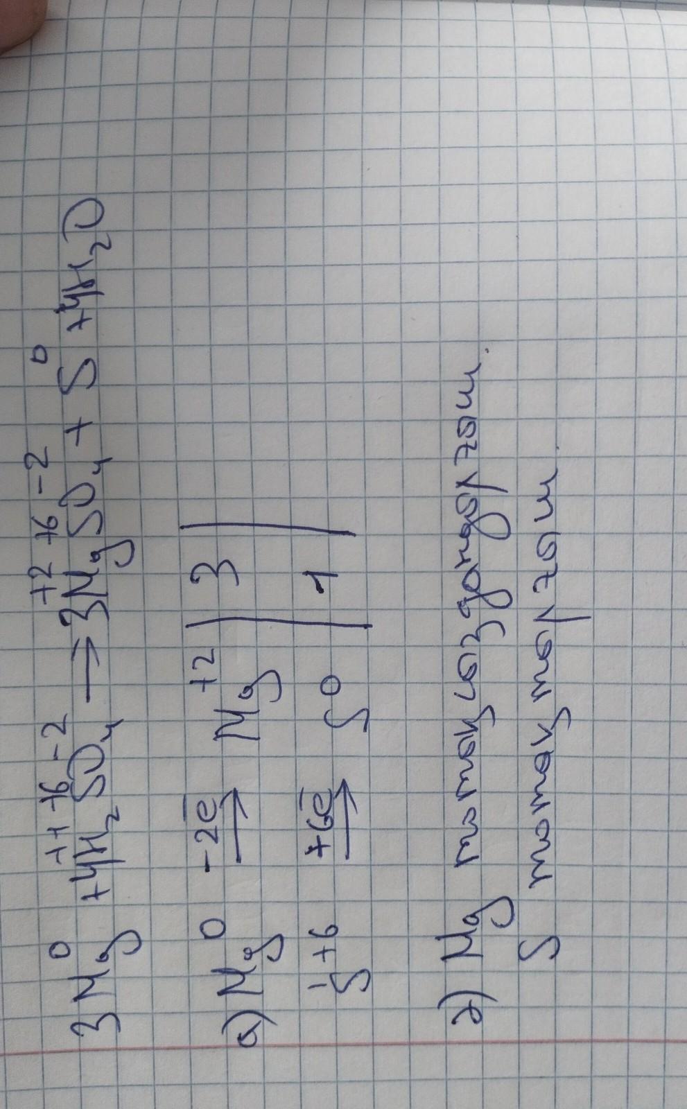 3. Mg+ H2SO4 Mg SO4+ S + 2H2O (балл)