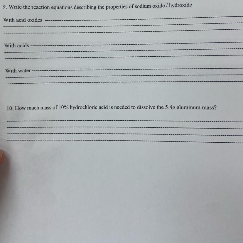 9. Write the reaction equations describing the properties of sodium oxide / hydroxide