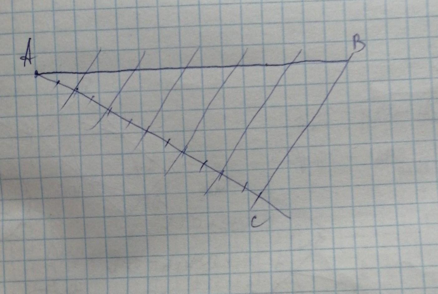 Чертим линии параллельные ВС через каждую отмеченную точку.