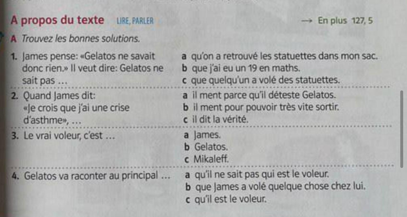 1. James pense: «Gelatos ne savait donc rien.» Il veut dire: Gelatos ne sait pas