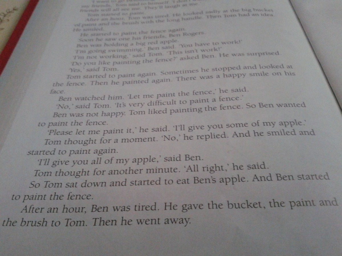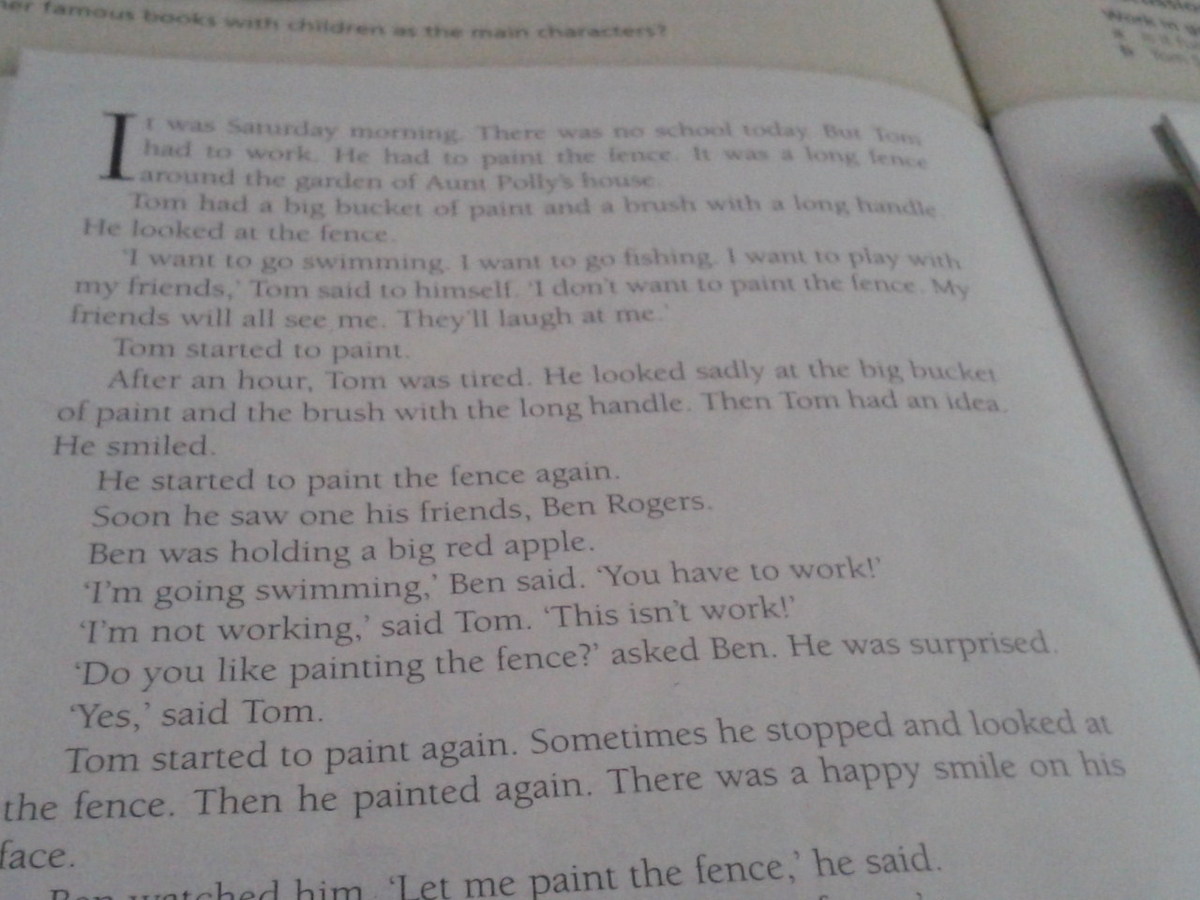 "я хочу пойти поплавать. я хочу пойти на рыбалку.я хочу поиграть с моими друзьями", сказал сам себе том." я не хочу красить забор. мои друзья будут смотреть на меня. они будут смеяться.