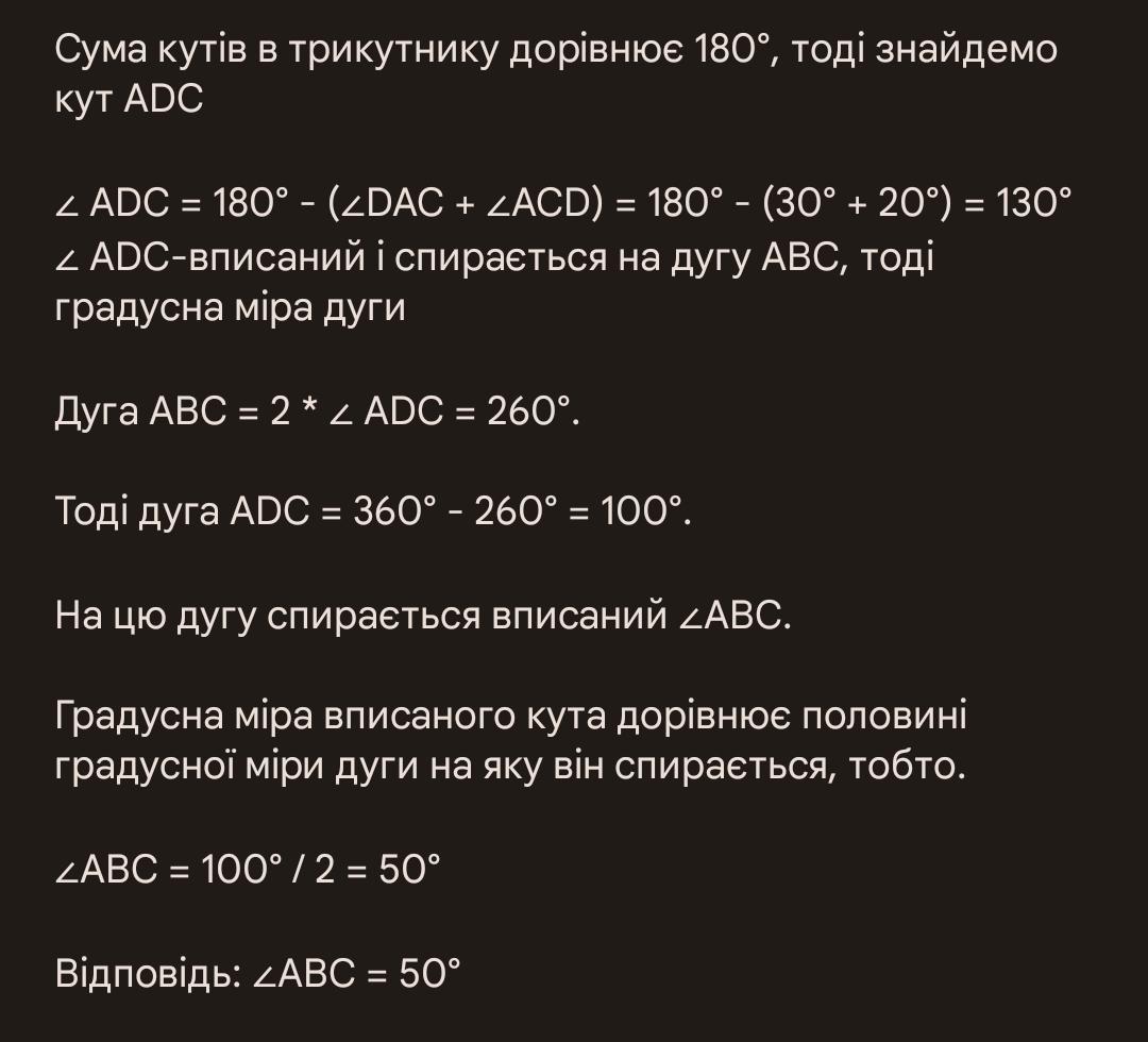 Відповідь: ∠ABC = 50°