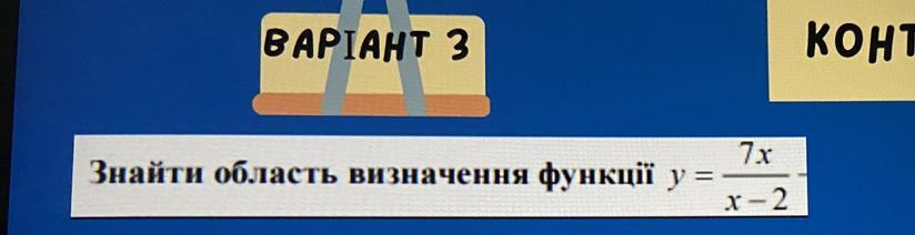 x (значок принадлежит) (-бесконечность; 2) (значок объединения) (2; +бесконечность)