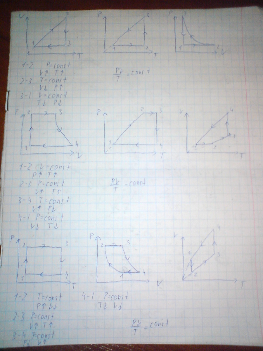 1 рисунок-изобразите в PV и PТ