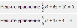 1/2х² +6x +10 =0 умножим все на 2 3/6х² + 3х +4=0 умножим все на 6